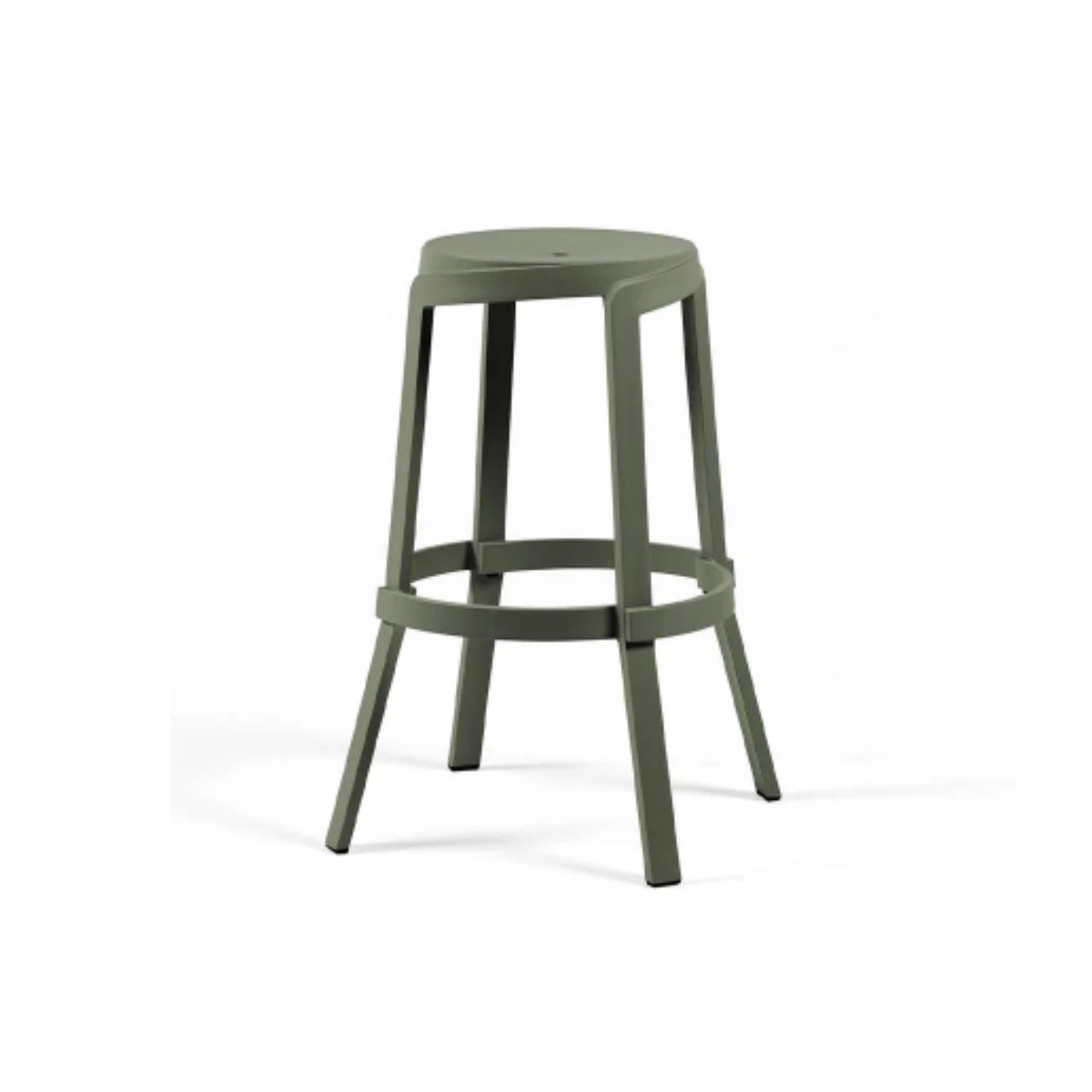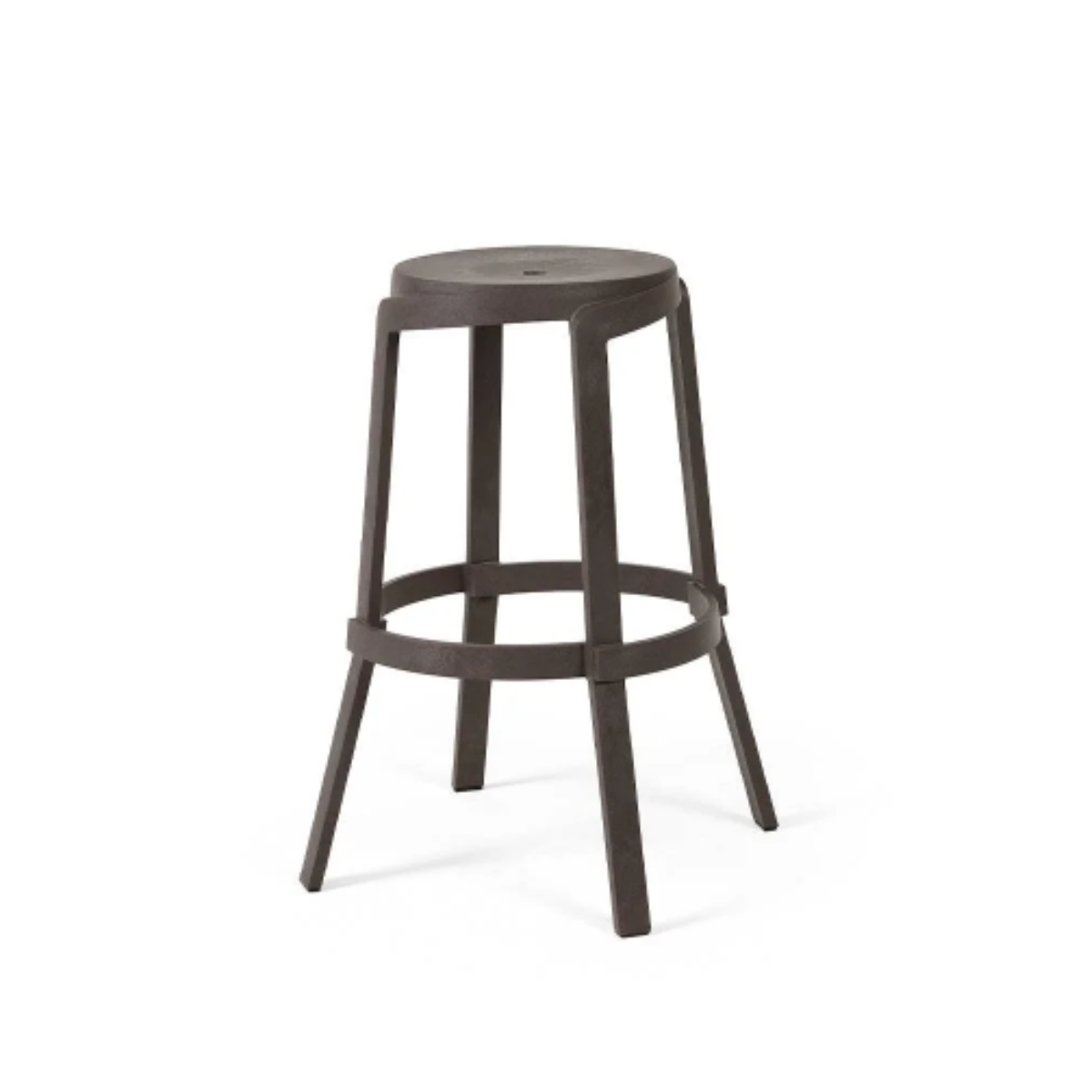 Stack Maxi es un taburete alto in polipropilene rigenerato para exteriores con un diseño lineal y secciones gruesas inspiradas en los haces de madera. La especial mezcla muestra un veteado intencional uniformado por el color Terra, Gesso, Basalto, Cactus, y una textura rugosa mate con un efecto vintage.